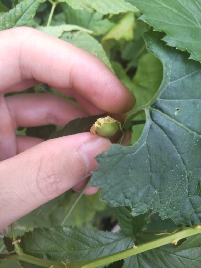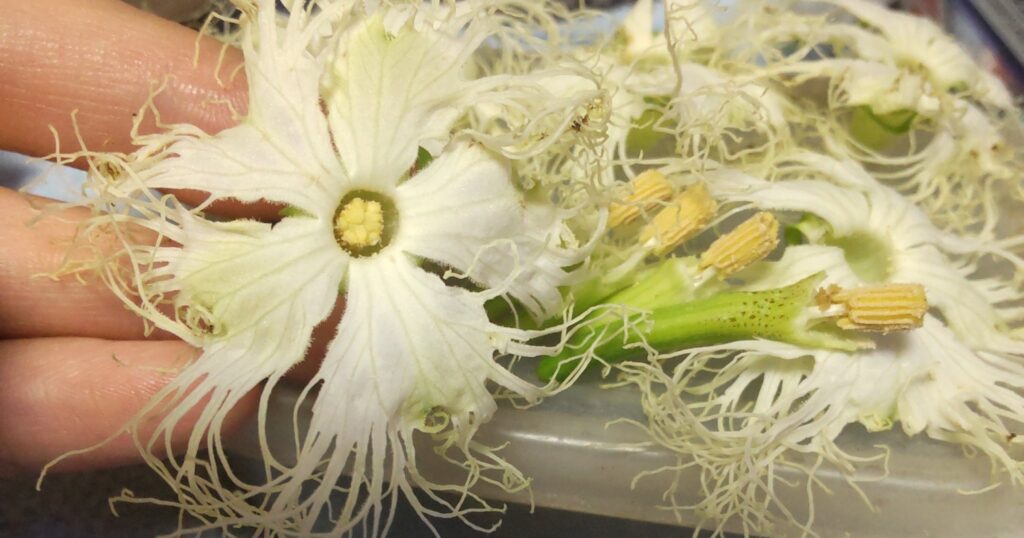 以前このカラスウリの花にキカラスウリを交配したことがある。