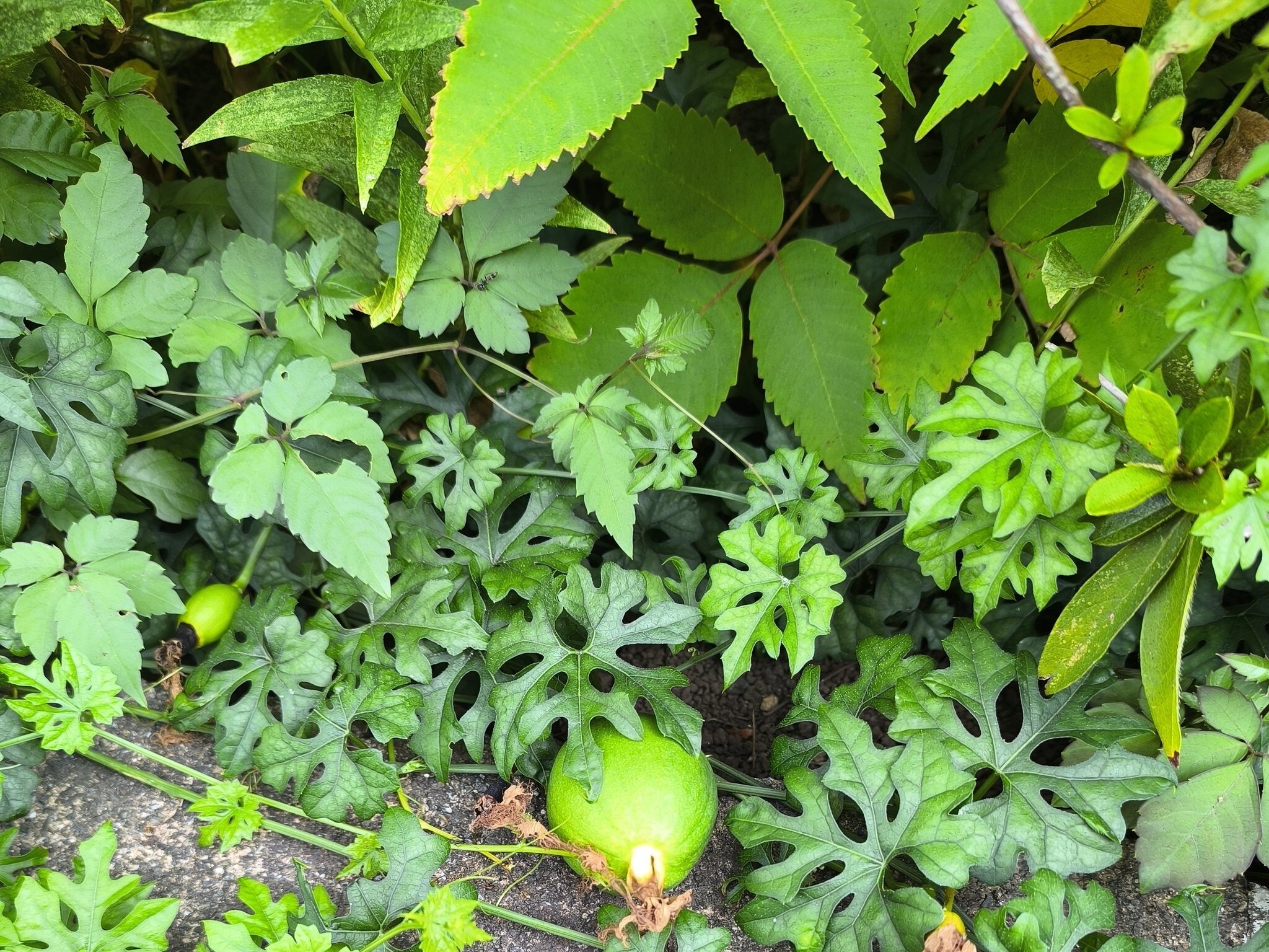赤実で小さいカラスウリとは異なり、イエローでデカめのウリ科雑草、キカラスウリ。