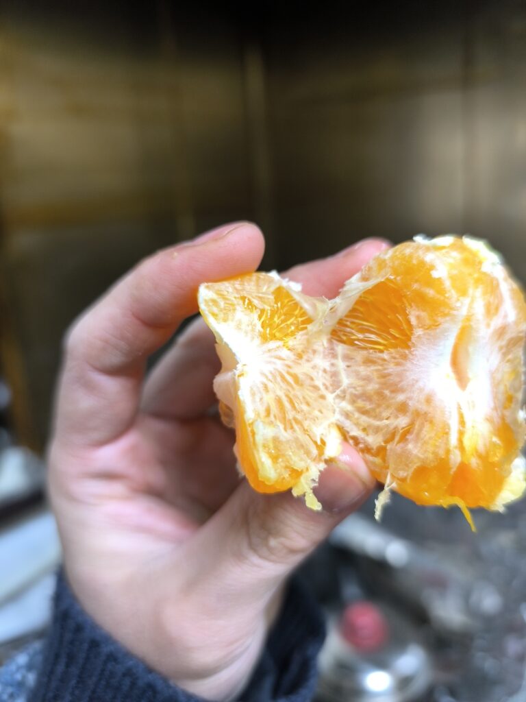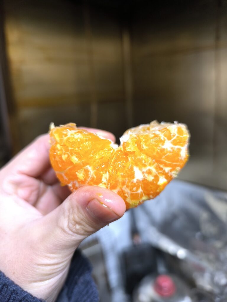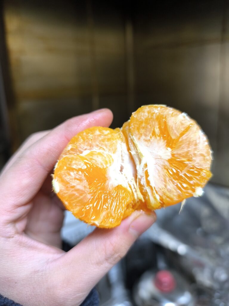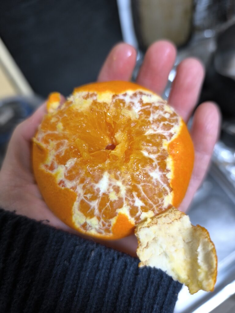 中身はかなり温州ミカンっぽいがかなりデカい。アルベドはほとんどなく食べやすさが感じられる。