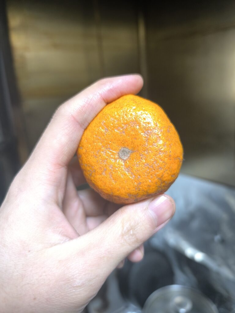 奄美には大玉種と小玉種の2種の島ミカンがあるらしいが、黒島ミカンは大玉種に似る。おそらく同じものだろう。