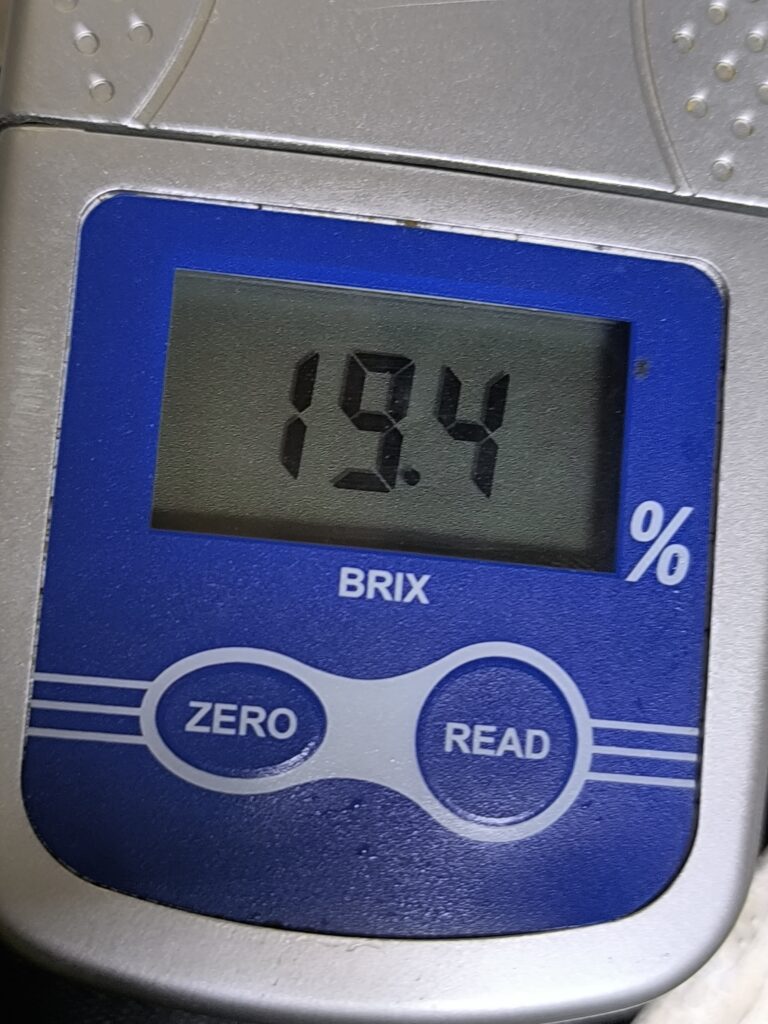 さすがに高級品種とされるだけあって糖度は凄まじいものがある。19.4、今回は中心の種子付近を測定したが、尻のあたりなど部位によっては20を超えてもおかしくはない。