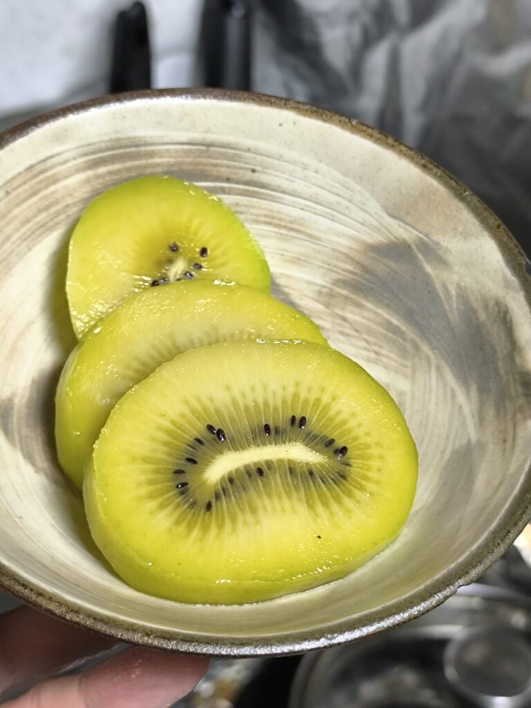 さぬきゴールドは食べた事が有るんだけど、糖度が高く酸味は少なく従来のキウイとは違った食感と感じた。