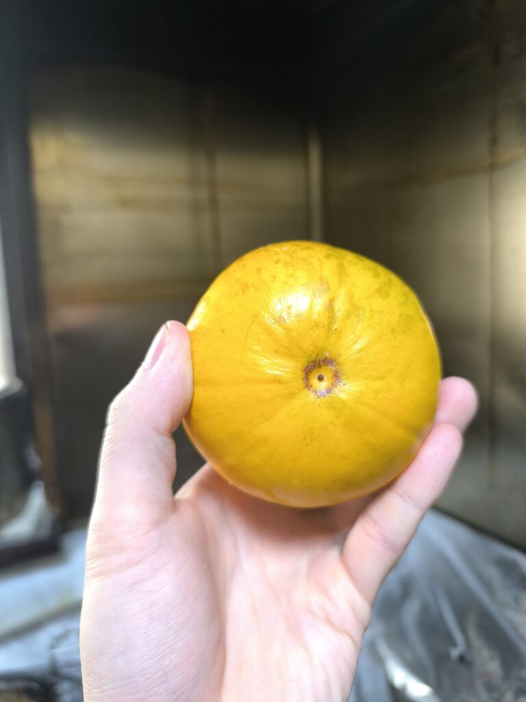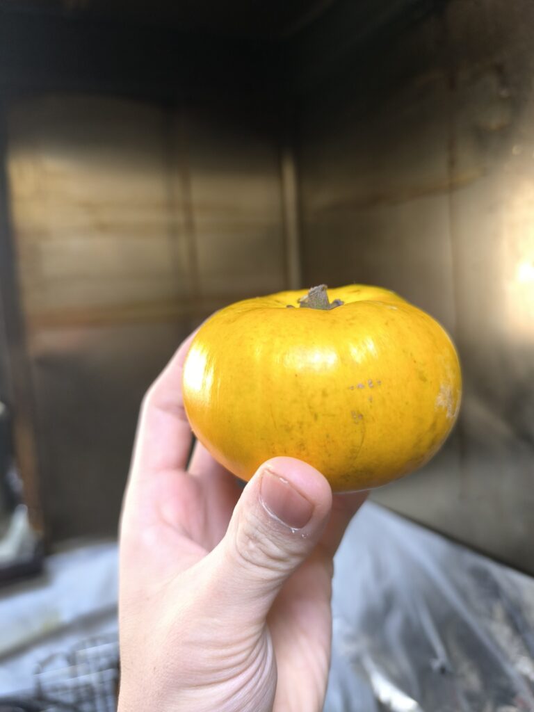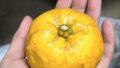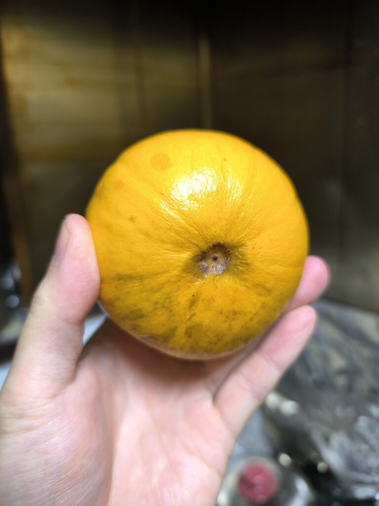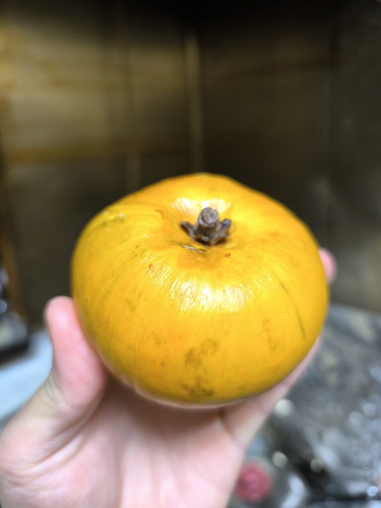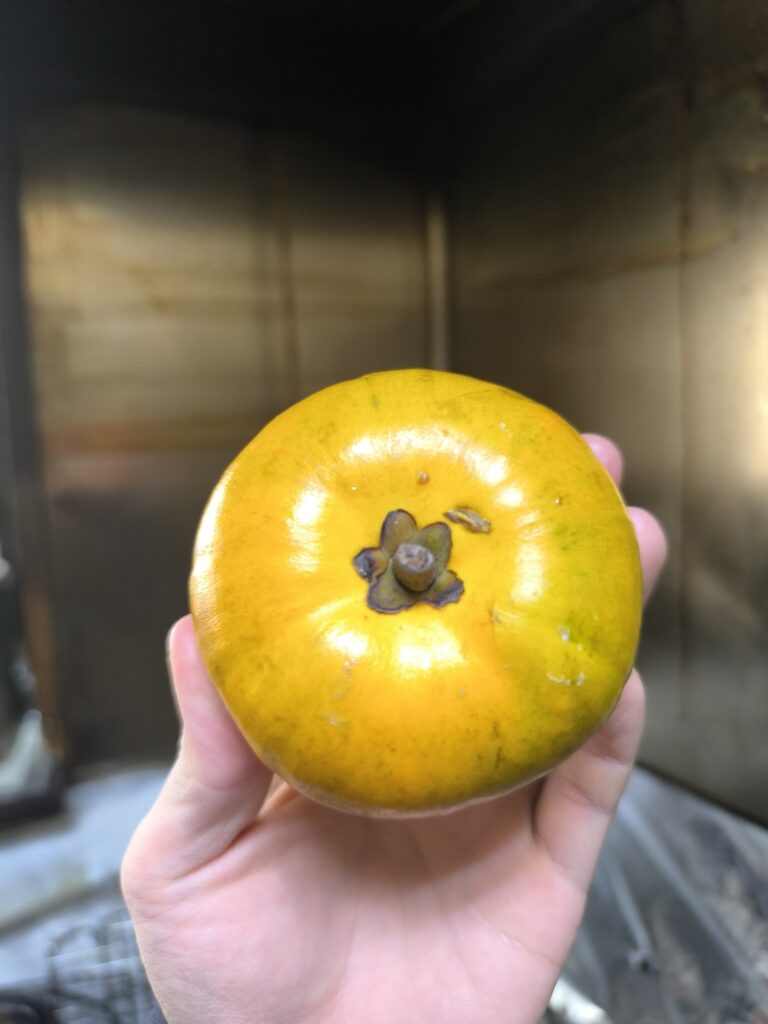 ロスサポテは巨大な柿のような見た目だが果皮やヘタの雰囲気はやはりカニステルと変わらない。