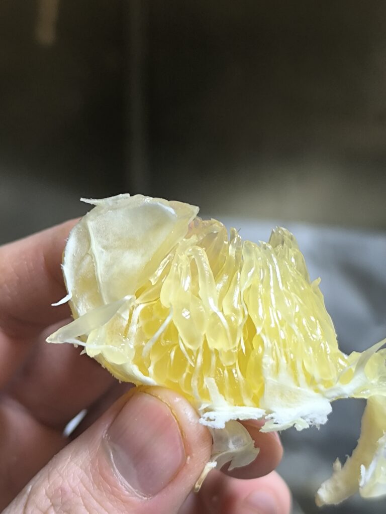 糖度は14.6とかなり高く、物によっては15を超えているのではないだろうか。親になった日向夏と同じくアルベドに苦味がないのも素晴らしい。