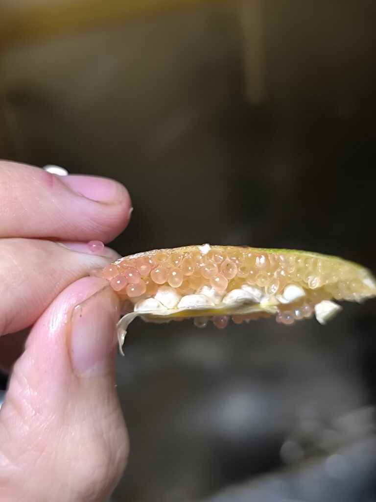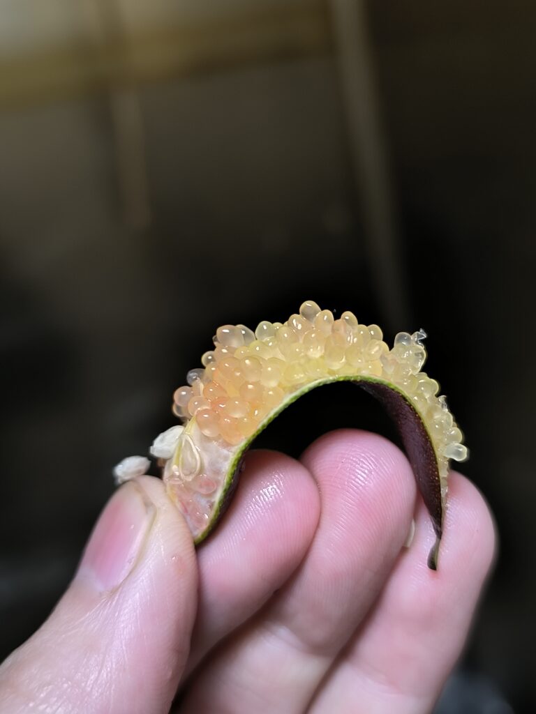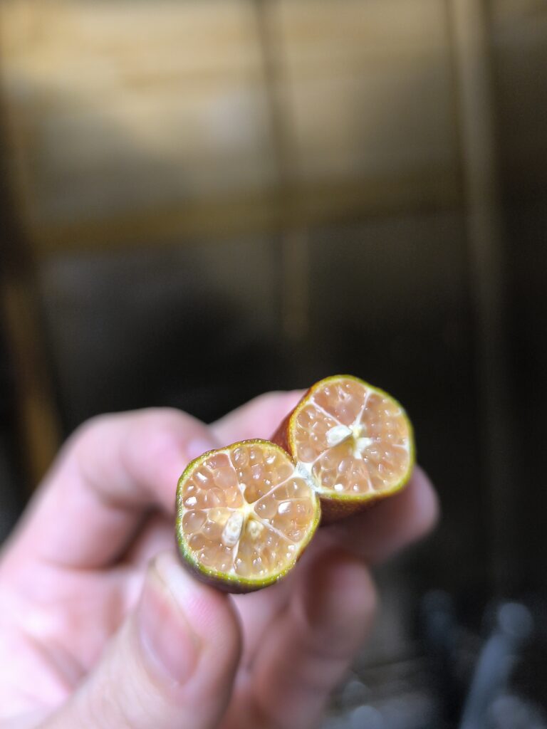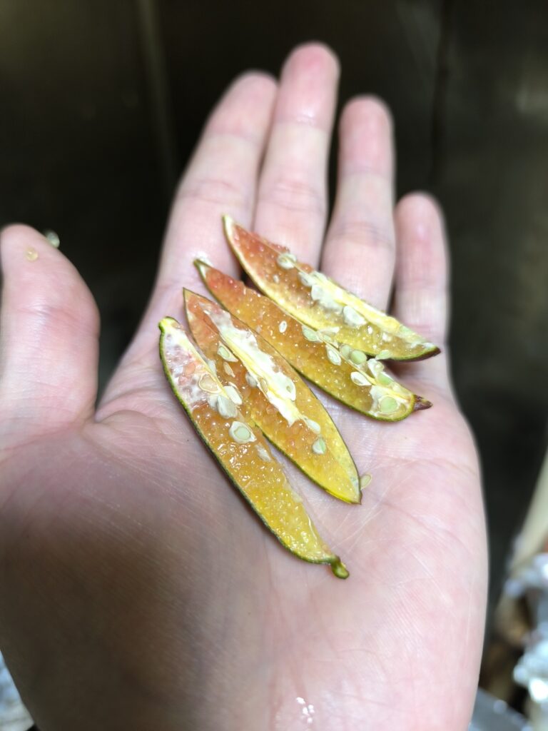 しかしこのフィンガーライム、瓤嚢の中心にびっしりと種があり、野生種感が凄い。