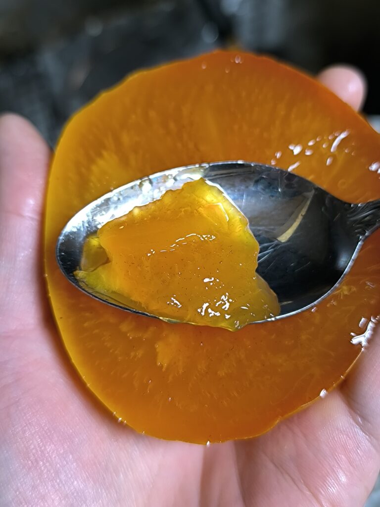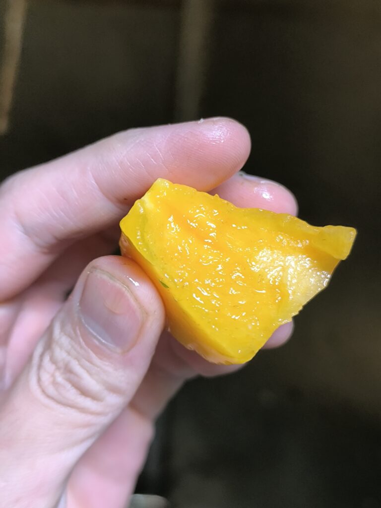 カットした面はまるで紅マドンナの様な美しく輝く夕焼け色、光を反射する様は正にオレンジゼリーのようだ。