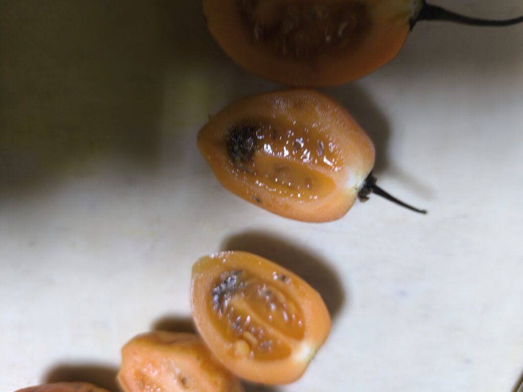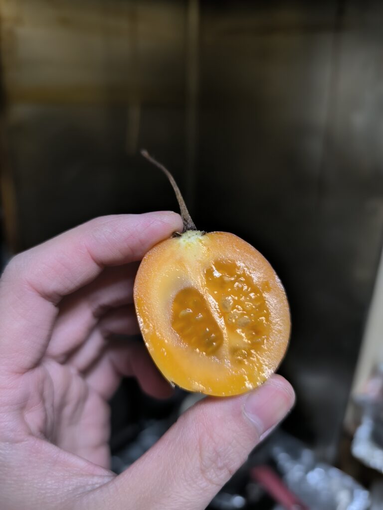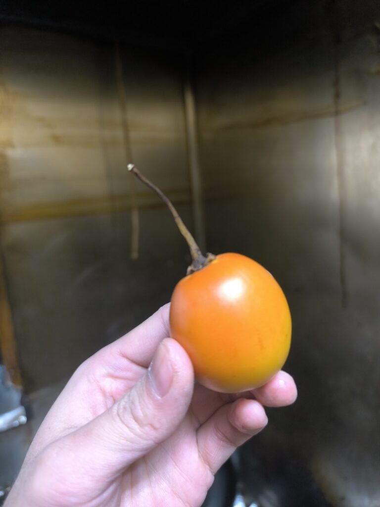 今回はウチで植えたら勝手に育ったサチャトマテ(別名タマリロ)を味見していく。