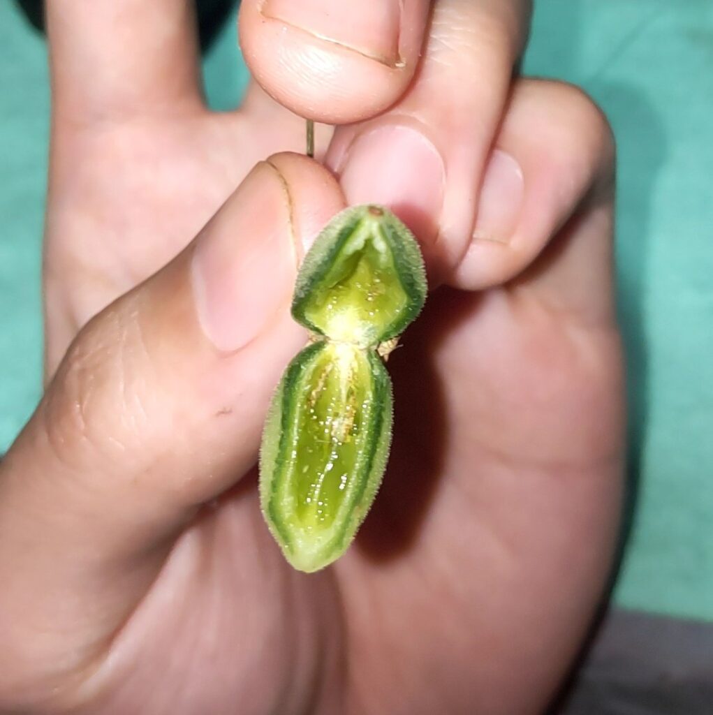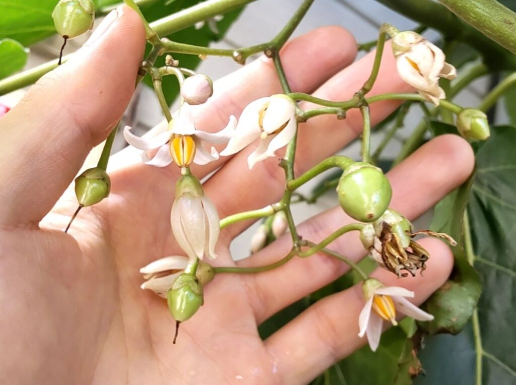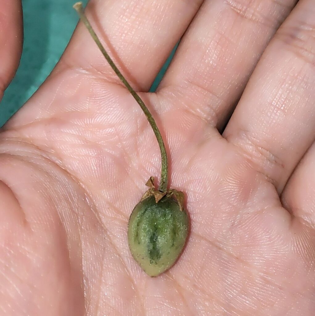 この種は自家受粉しないが、トマトトーンで小さな実がなる。