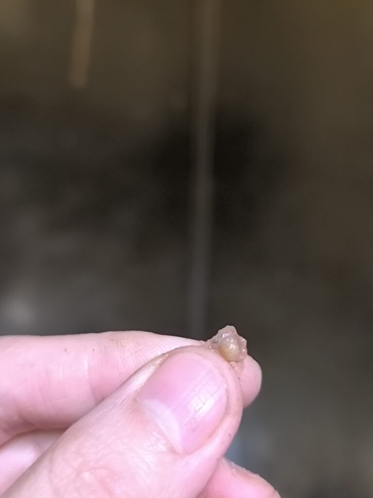 割ってみるとやはりガクが果実を包み込む様に育つタイプで、イチゴやケンポナシのような準果物のような扱いでよさそうなフルーツ。