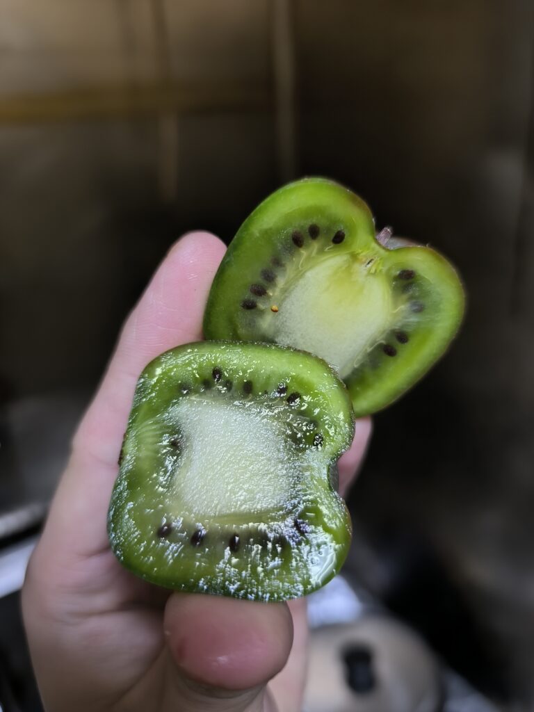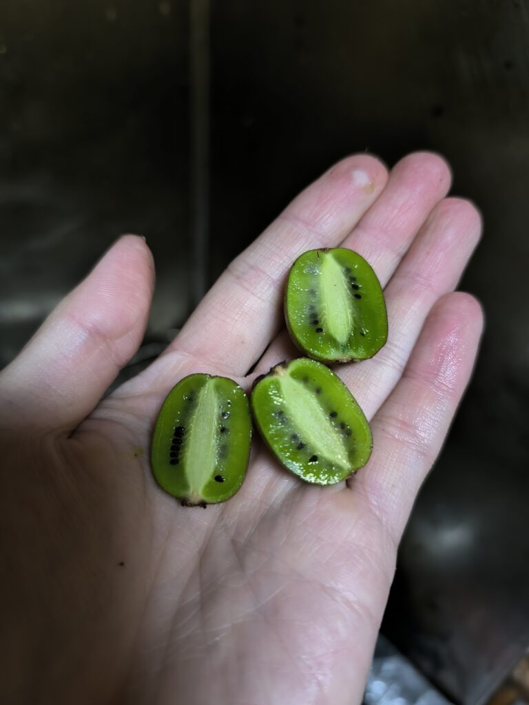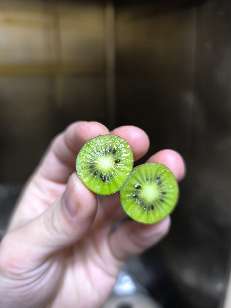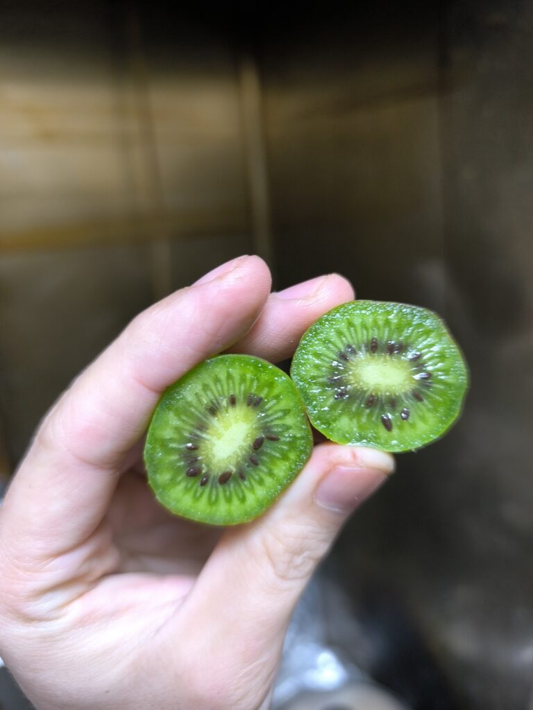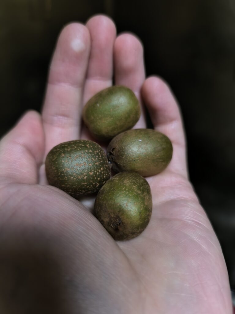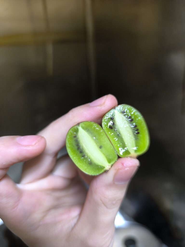なんとシマサルナシに三粒だけ全く酸味を感じさせない甘いキウイフルーツの味がする粒があったので、