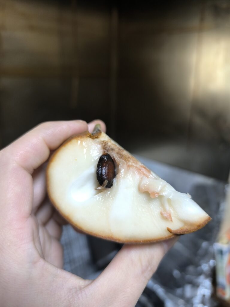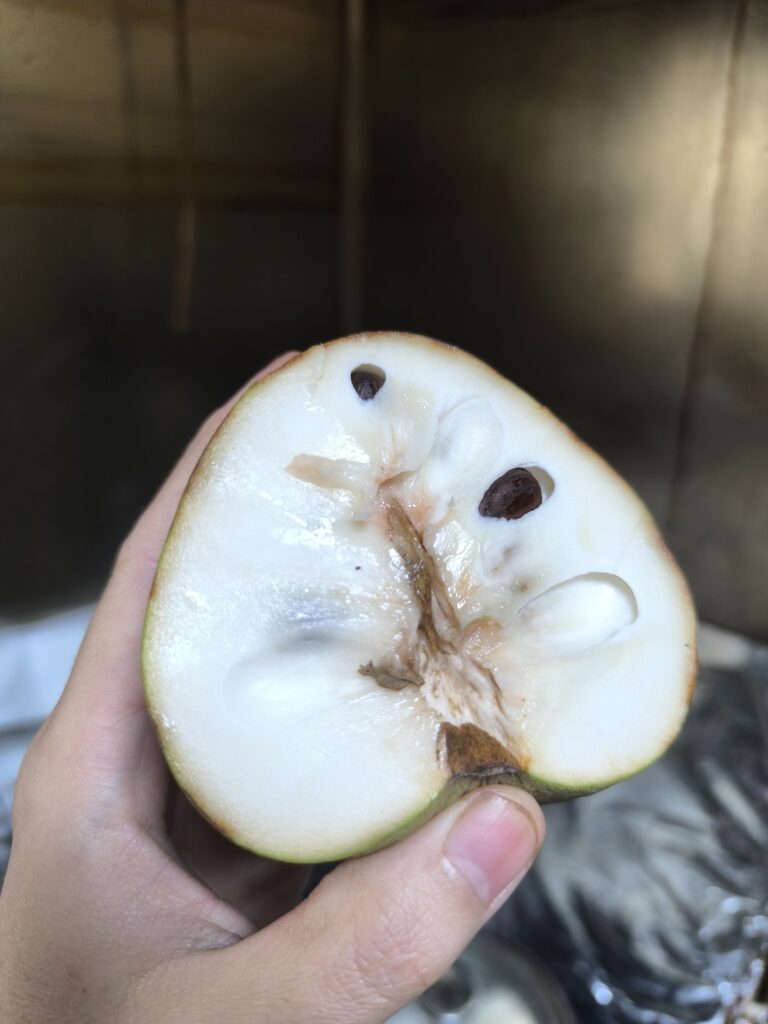 そしてシャカトウと同じくチェリモヤは種子が多い。改良が進んだ結果なのか種間交雑ゆえに種子が成長しにくいのか、アテモヤは比較的種子が少なく感じる。