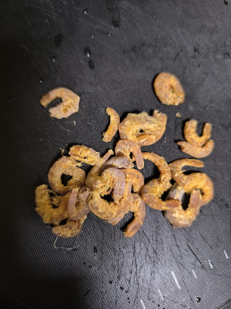 まず、ドライシュリンプを刻むかシュリンプパウダーを買ってくる。一袋1500円とかするのでバナメイエビ買ってきてカリカリになるまで弱火で素揚げしても良いかも