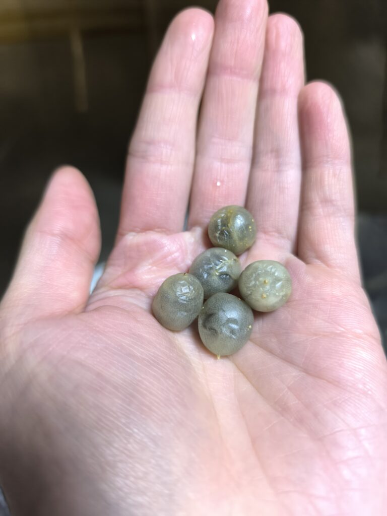 一玉だけ化け物級の糖度をもつスズメウリがいたが、果肉の甘さは普通で、胎座部の果汁が非常に甘かった。