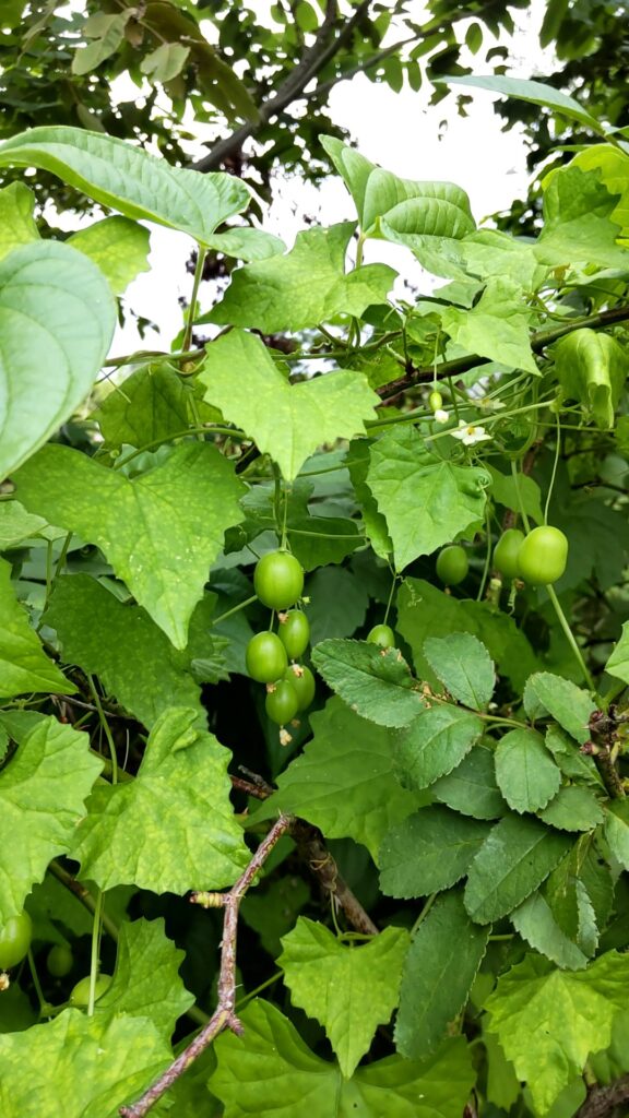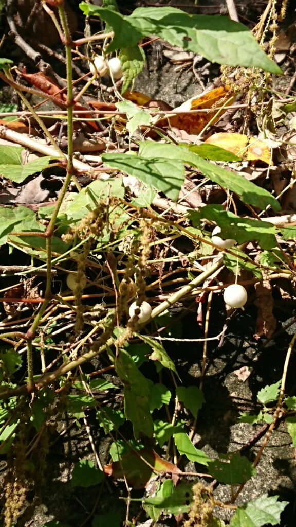 河川敷や山の林縁に生える小さき卵のやふな果実をつけるつる性のウリ。