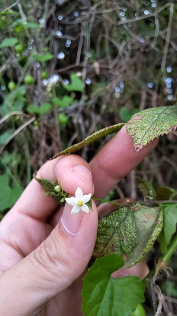花は他のウリ科と比べると多肉質で小さな花弁が可愛らしい。