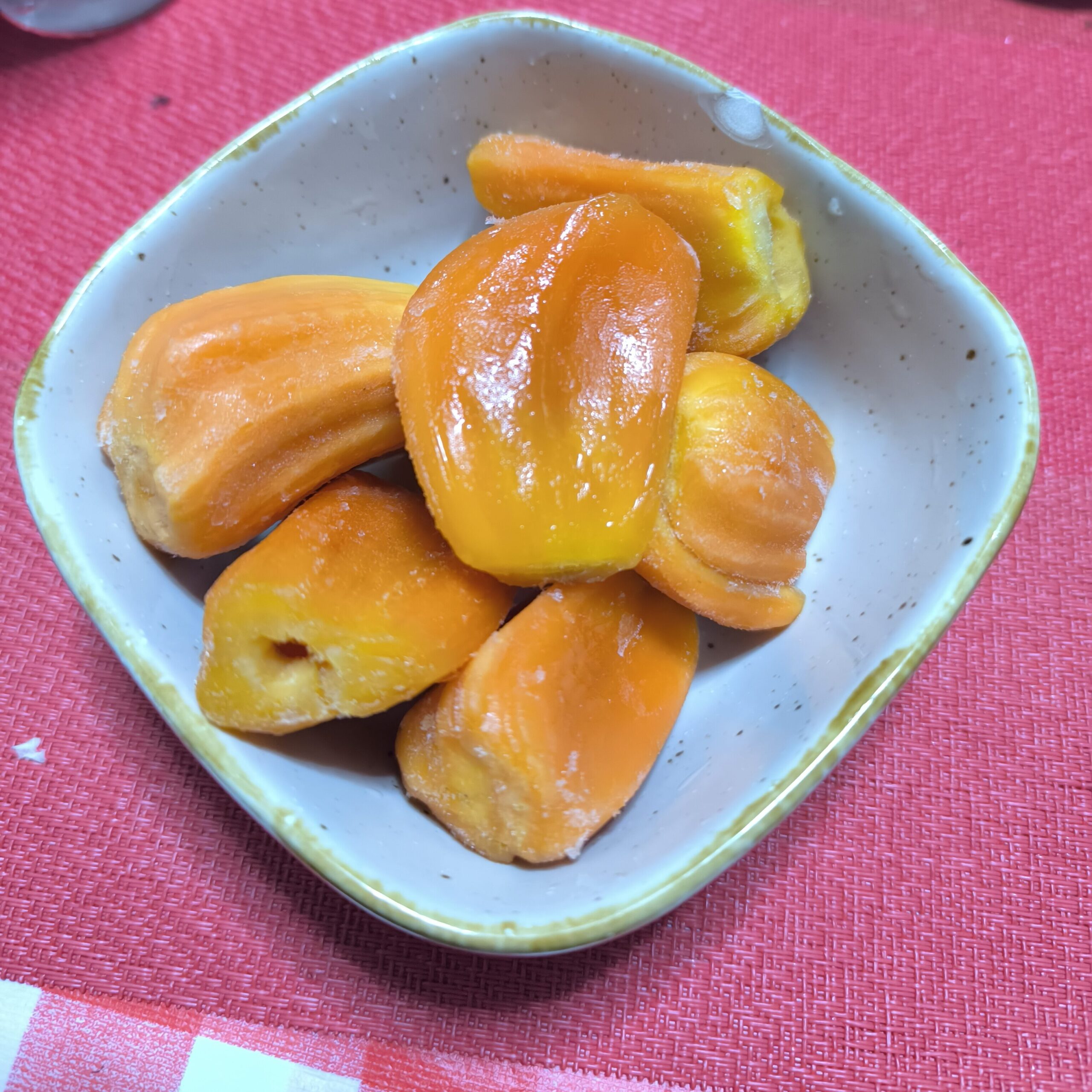 以前食べたジャックフルーツは黄肉で果肉の甘さは中程度だったがこれはどうかな。