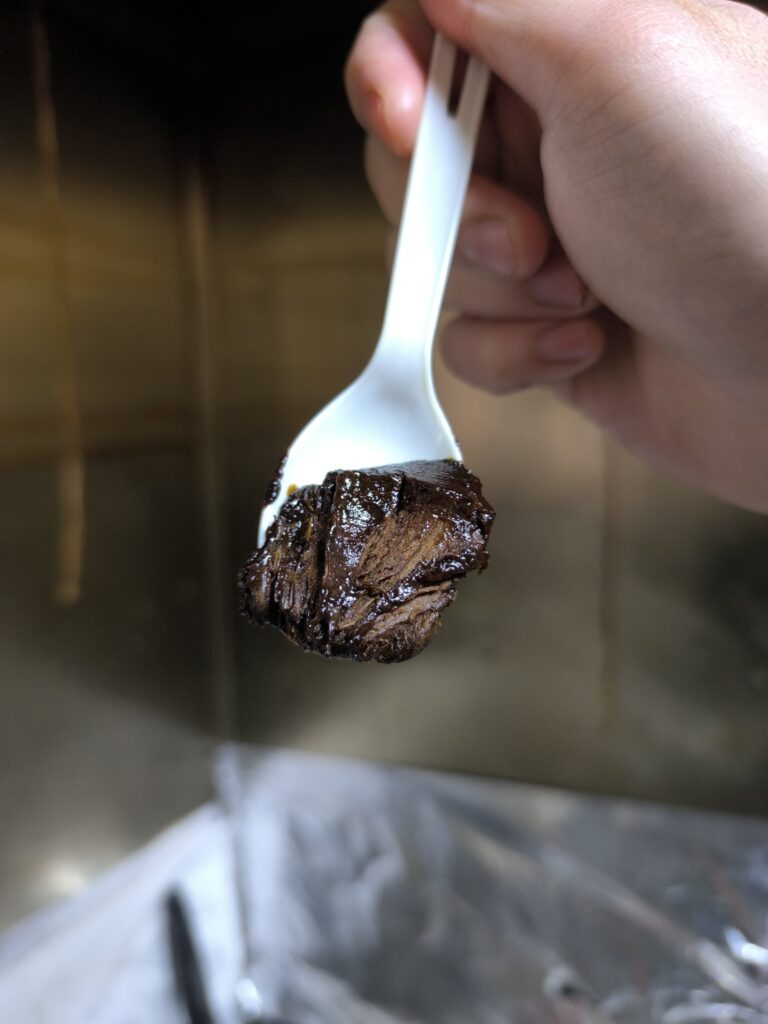 ペクチンとでんぷんの合わせ技か弾力を感じるほど重たくねっとりして滑らかな食感は正にチョコレートプディング。